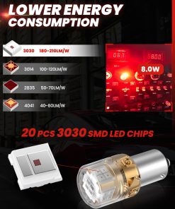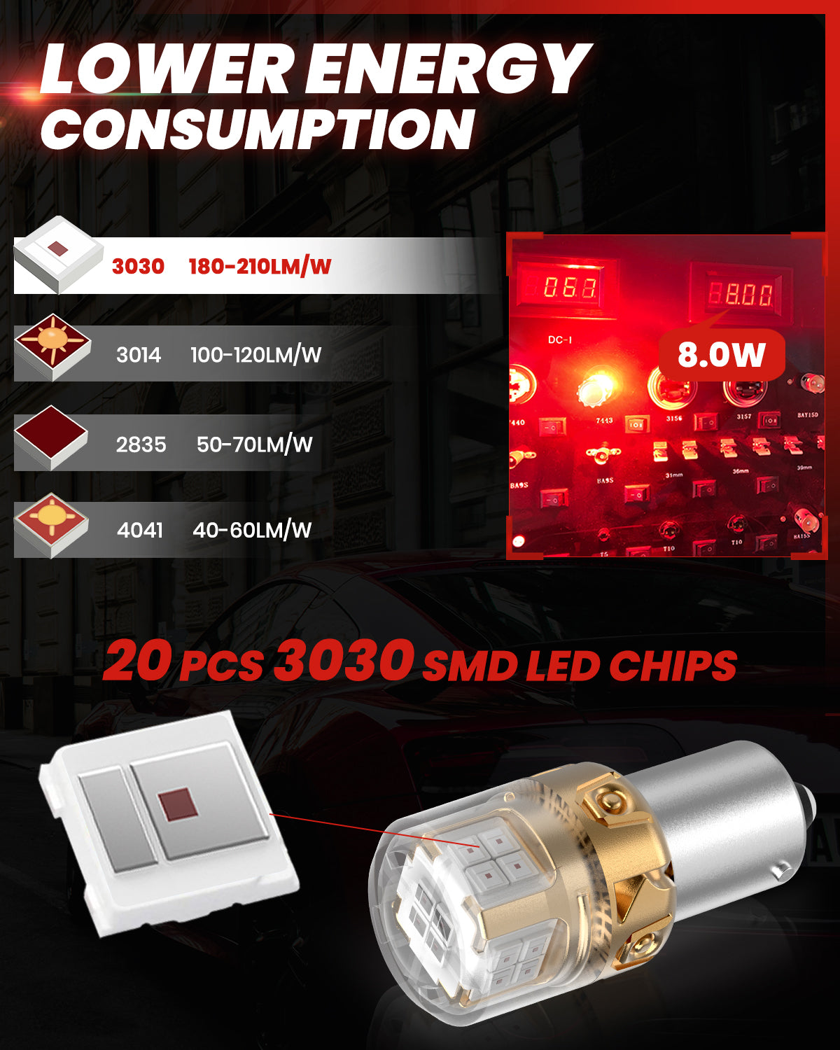 LEDs light up faster than halogen bulbs, emitting bright and conspicuous, intense red light that immediately captures the attention of the drivers behind you when the brakes are applied. Make a big difference for your vehicle!