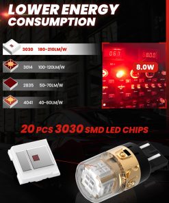 LEDs light up faster than halogen bulbs, emitting bright and conspicuous, intense red light that immediately captures the attention of the drivers behind you when the brakes are applied. Make a big difference for your vehicle!