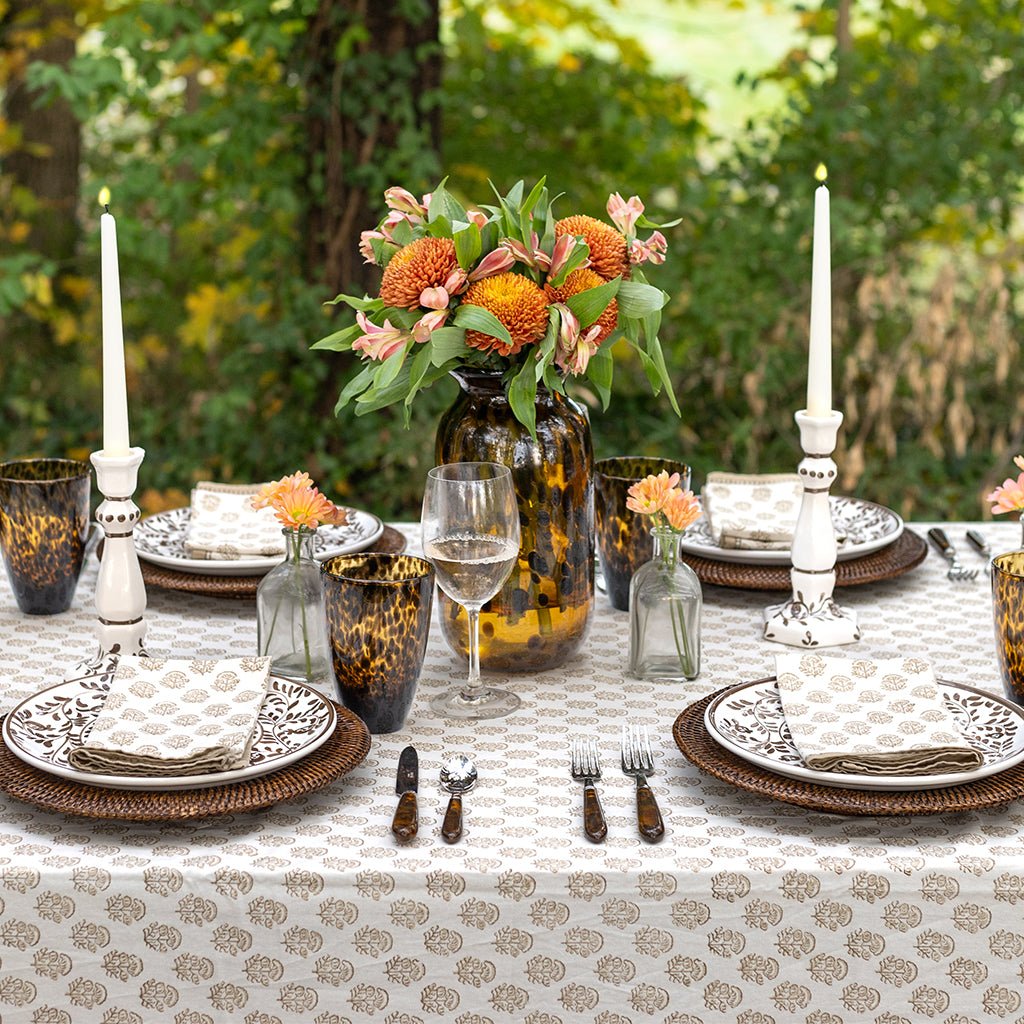 Add a touch of natural splendor to your dining table with the Anika Beige Tablecloth. Skillfully hand-blocked with a delicate floral motif, this tablecloth exudes a graceful and refined charm. Whether entertaining guests or enjoying a relaxed meal with loved ones, the Anika Beige Tablecloth will elevate your table with style.