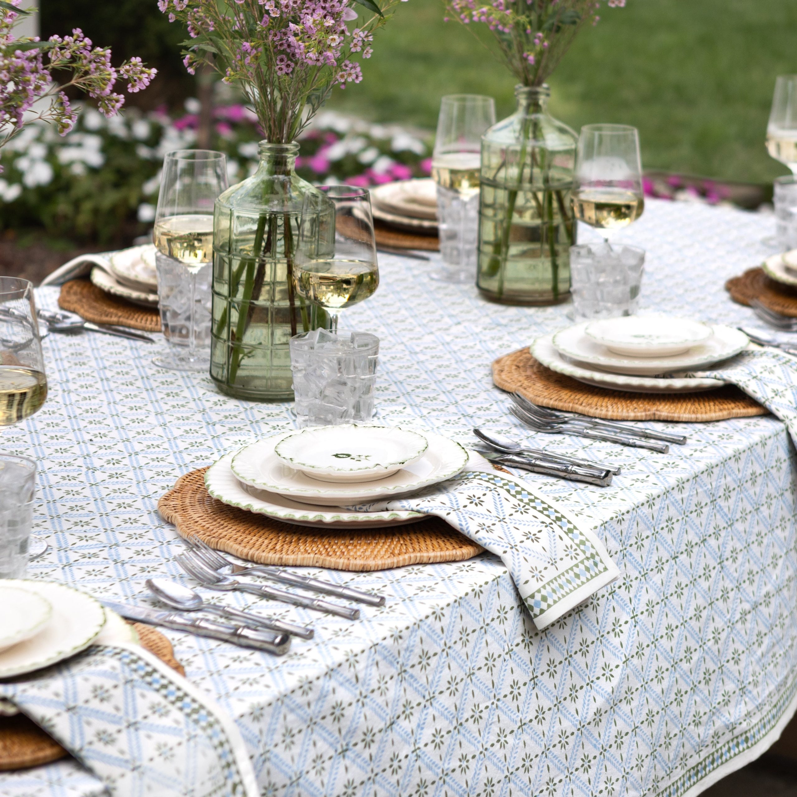 A fresh take on a classic, the Annie Gingham Tablecloth brings timeless checks to the table. Hand block printed on cotton, it’s available in six sizes to suit gatherings of any scale. Its versatility makes it perfect for both everyday dining and elegant entertaining.