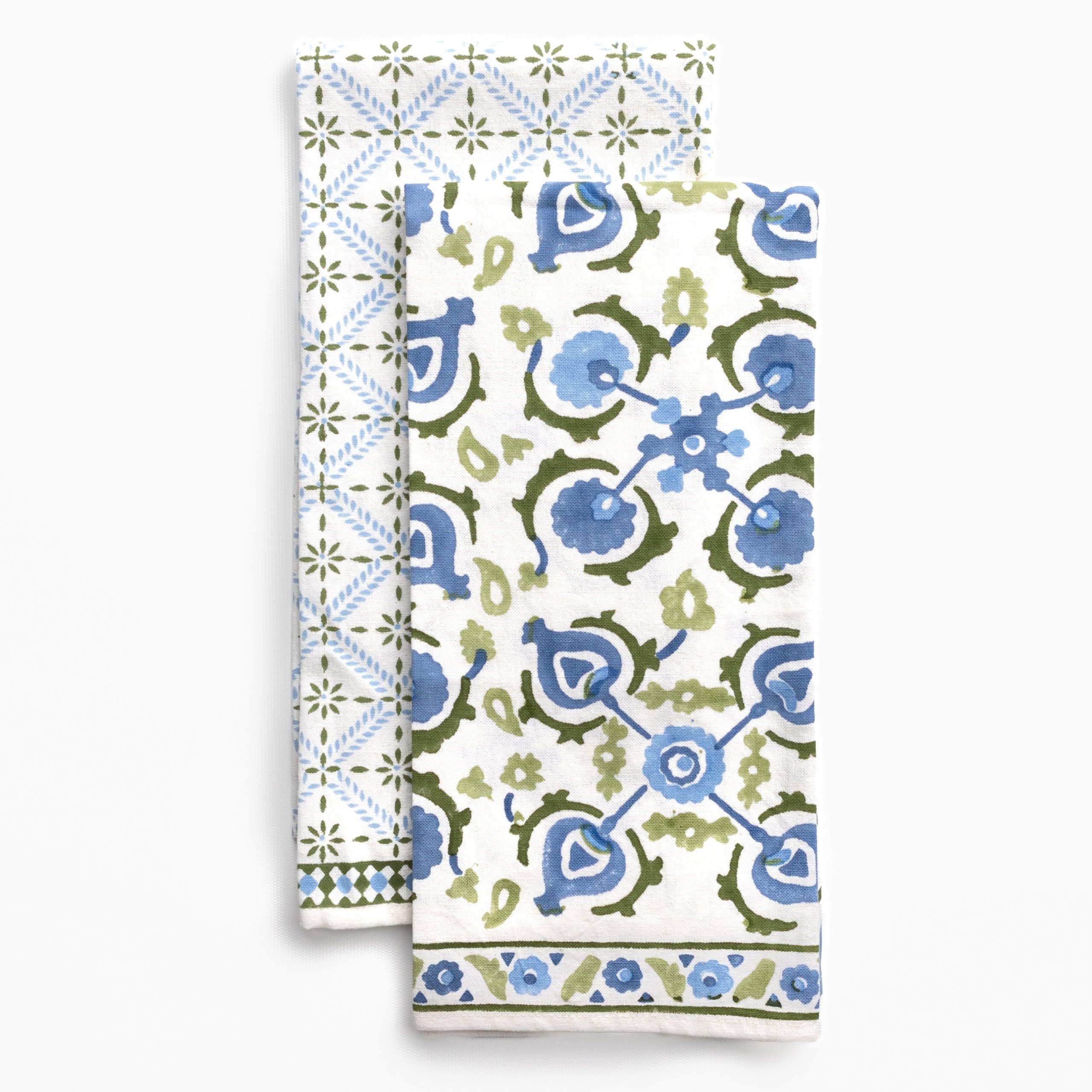 A fresh mix of structure and classic charm, this set pairs the Fenimore Trellis and Annie Gingham prints. Hand block printed on soft cotton, the tea towels are equally practical and beautiful for everyday use. Perfect for gifting or layering in the kitchen, they bring timeless design into daily routines.