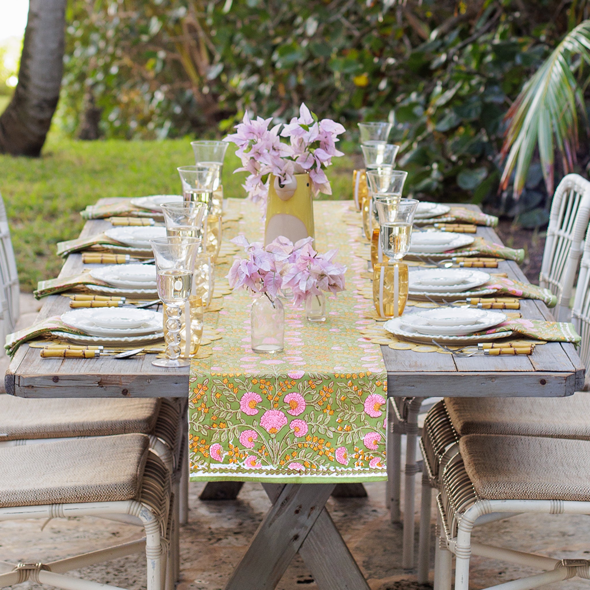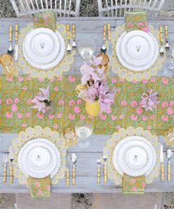 Infuse your dining space with the vibrant energy of spring with our stunning Cactus Flower Fern & Flamingo Table Runner. Featuring a captivating floral print in shades of rosy pink and fresh green, this table runner brings a touch of natural beauty to any occasion. Whether adorning your everyday table or dressing up for a special event, its free-spirited design adds a playful yet sophisticated touch to your decor.