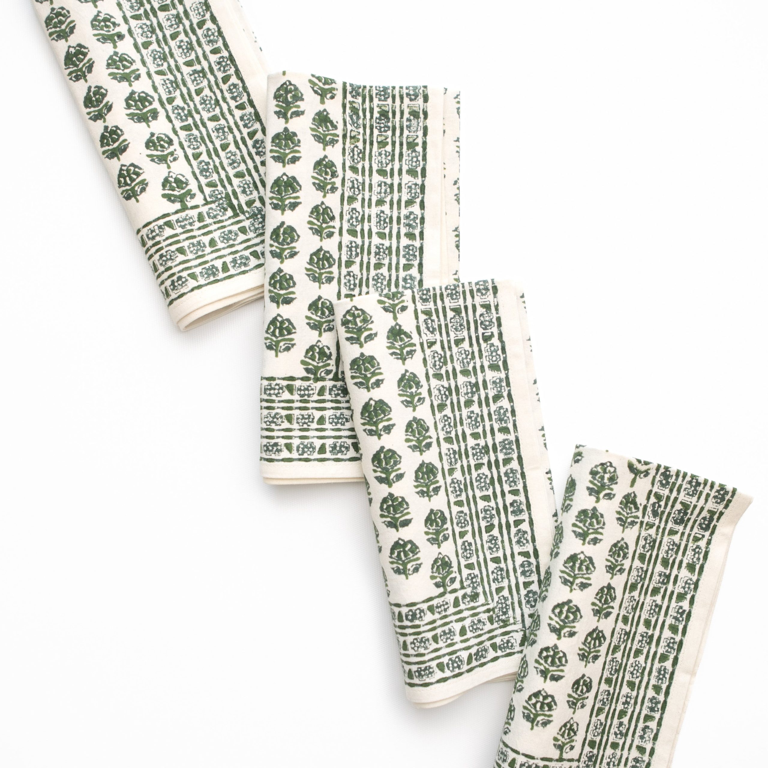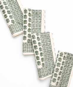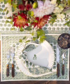 Elevate everyday dining with our Elise Green Napkins. Hand block printed with leafy florals in soft green tones, these cotton napkins balance beauty and durability, making them perfect for both weeknight meals and special occasions.