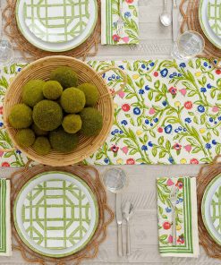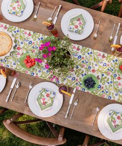 The essential Spring pattern! Hand painted flowers stretch across the vine in vibrant shades of yellow, blue and red. Our Emma Table Runner is a lively, hand blocked print and a great foundation piece to any kitchen or dining table for warm-weather entertaining.