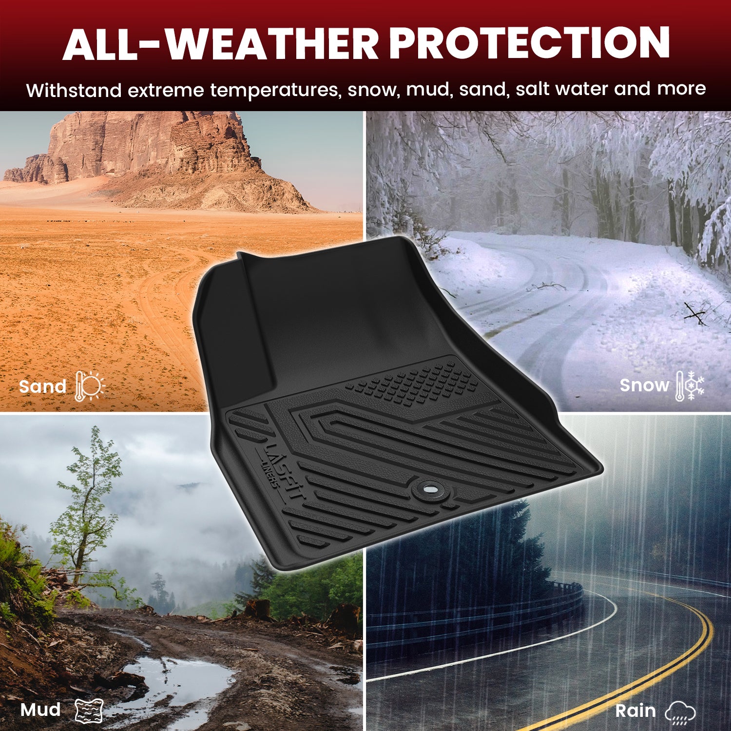 Traditional rubber mats often come with drawbacks like a heavy, sticky texture especially for families with kids. Lasfit’s TPE floor mats offer a modern alternative that’s lightweight, flexible, making them a family-friendly choice. They are highly resistant to wear and tear, maintaining their shape even under heavy foot traffic. Their non-slip backing ensures the mats stay securely in place, adding an extra layer of safety during every drive. With TPE mats, you get the perfect blend of durability, luxury, and ease of maintenance, making them the ideal choice for the Nissan Armada’s spacious and comfortable interior.