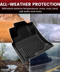 Our all-weather floor mats are designed to withstand any weather condition. They are stain-resistant, waterproof, and anti-slip, making them easy to clean and maintain. Built from high-quality materials, these liners won’t break down under extreme weather or daily wear like rain, slush, snow, or mud. The durable edges resist slouching and won’t deform in winter. After cleaning, the mats will look brand new, maintaining their effectiveness and appearance.