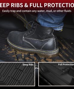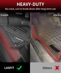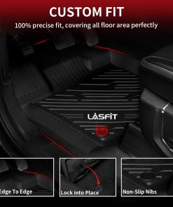“text”: “Choose floor mats designed for your specific Ford Super Duty model and interior layout with secure fitment and durable materials. Brands like Lasfit are often selected for their custom-fit all-weather TPE floor mats.”