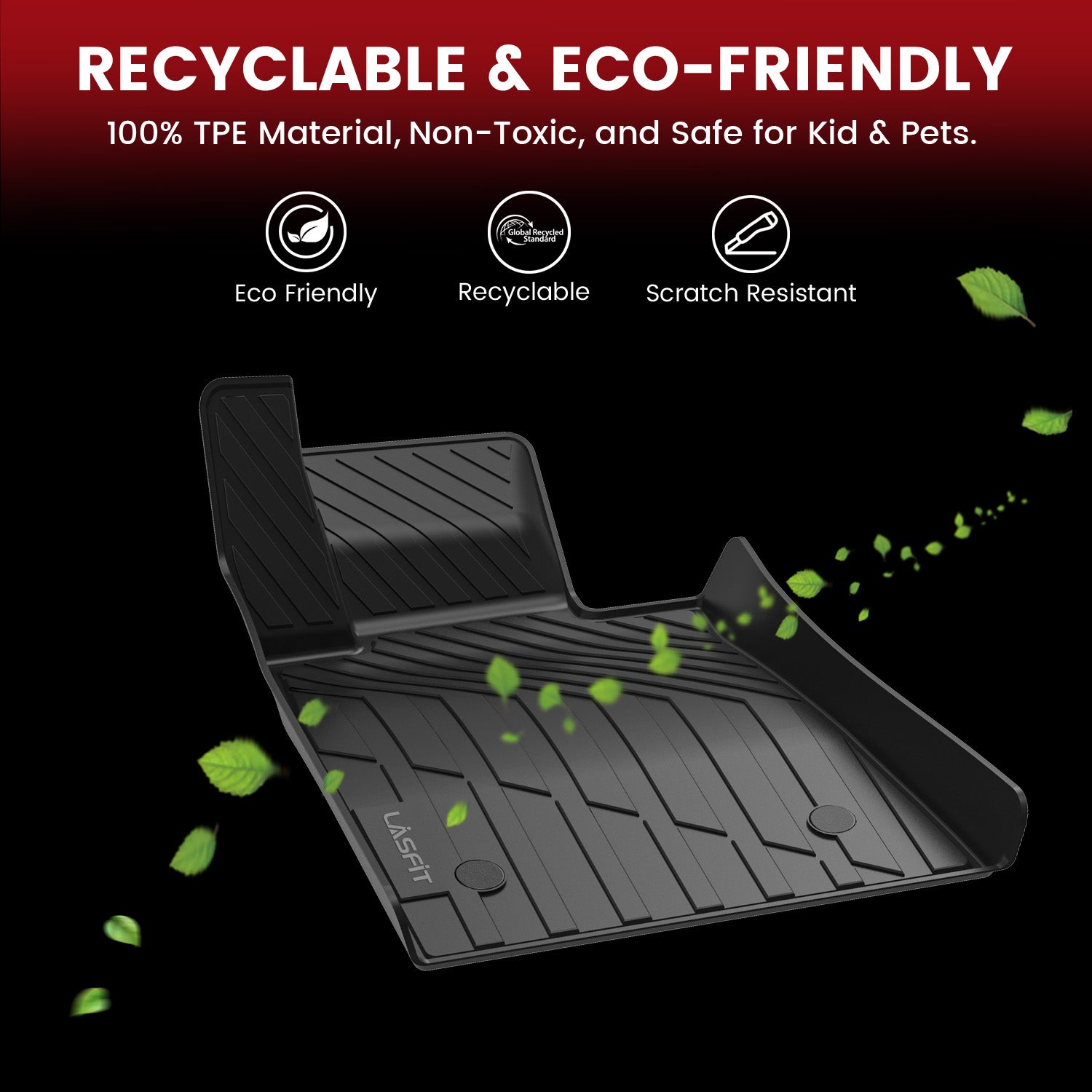 Lasfit floor liners are made from 100% Brand-new Thermoplastic Elastomer (TPE), which is extremely elastic and wearable. It has a comfortable feeling of feet, prevent accidental skidding even when your feet are wet. The unique groove design also increases the friction of the mat, maintaining excellent durability even with prolonged use.