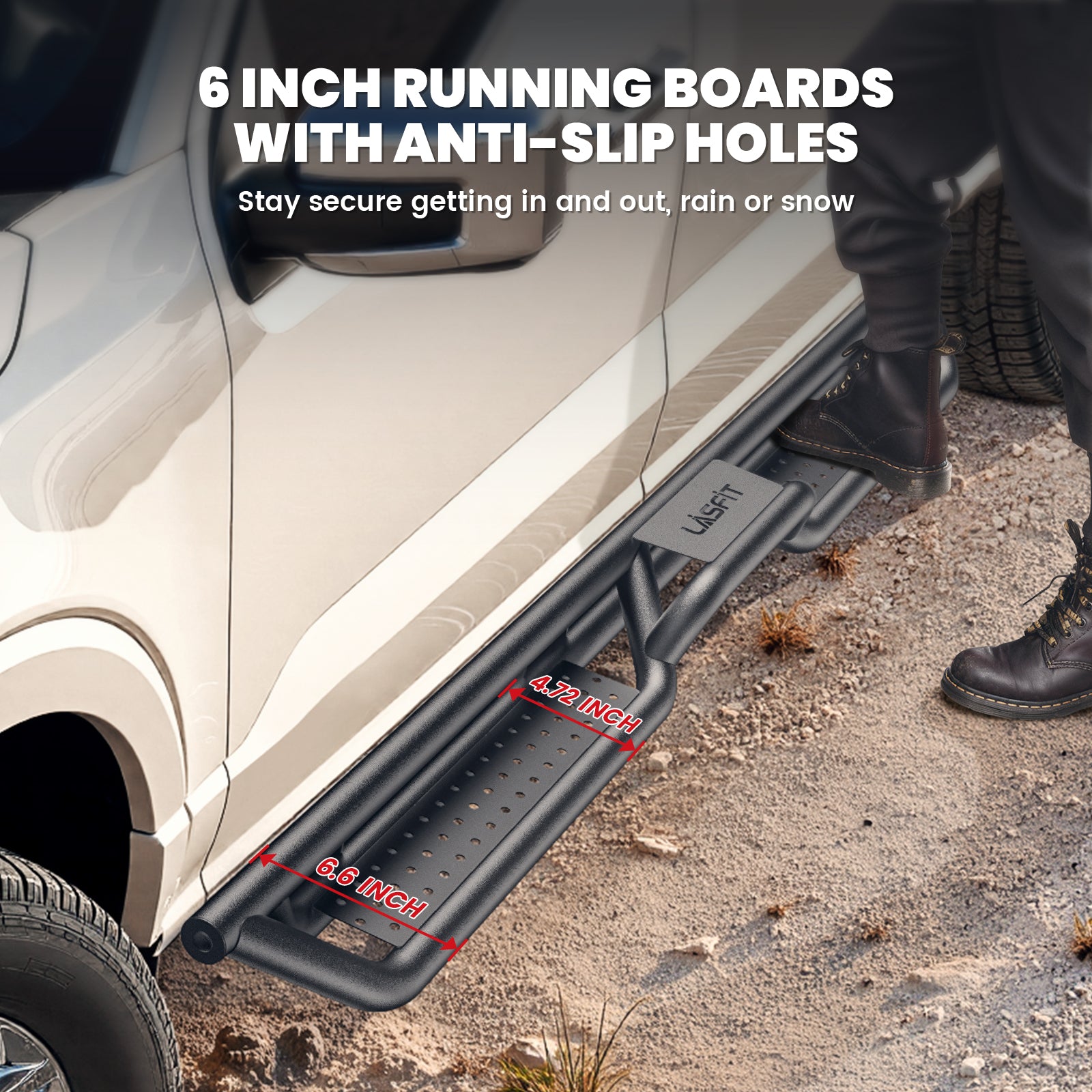 Built to handle harsh winter conditions, these Lasfit running boards resist corrosion from snow, ice, and road salt—delivering dependable performance and protection all year round.