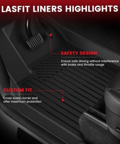 Lasfit floor mats for 2026 Tesla Model Y protect resale value with a precise 3D laser-scanned fit. Non-slip material and secure retention systems prevent sliding. The textured surface traps debris and liquids, ensuring clean carpets and safe driving with stable throttle and brake control.
