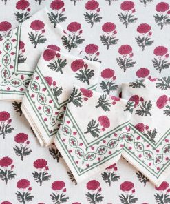 Named after an ancient and holy city in India, our Gaya Rose napkins capture the splendor, mystery and beauty of the Asian subcontinent. Printed by hand using rich dyes and carved wooden blocks to achieve a one-of a-kind design, these cotton dinner napkins make a striking display on your formal tabletop.