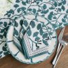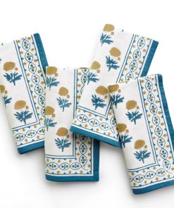 Named after an ancient and holy city in India, our Gaya Teal & Marigold Napkins capture the splendor, mystery and beauty of the Asian subcontinent. Printed by hand using rich dyes and carved wooden blocks to achieve a one-of a-kind design, these cotton dinner napkins make a striking display on your formal tabletop.