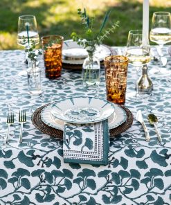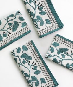 Add a pop of elegance to your table with our Ginkgo Teal Napkin set. Each napkin is meticulously hand block printed with a ginkgo leaf pattern in rich teal tones. Made from soft cotton, these napkins are perfect for casual meals or more formal gatherings. Durable and easy to care for, they’re a stylish way to elevate everyday dining or special events.