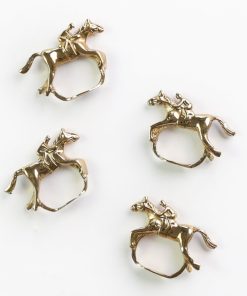 Bring a touch of luxury to your table with the Gold Jockey Napkin Rings. This set of four features a stunning horse & jockey design that shines at every gathering. Ideal for formal dinners or casual brunches, these napkin rings are the perfect accessory to elevate your dining decor.