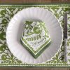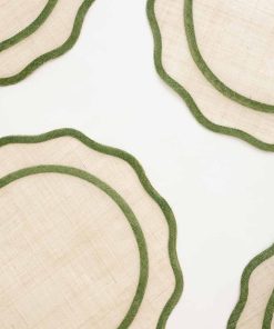 Our green edged scalloped round woven placemats will add just the right amount of elegance to your table. These chic placemats wipe clean with a damp cloth so they are practical for everyday use, yet they remain elegantly refined for your finest dinner party.