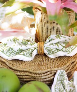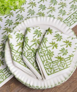 Bring island vibes to your table with these Palm Tree Green Napkins. The green hand block printed palms and fun geometric border make every meal feel like a mini getaway, while the soft cotton gets better with every wash. Casual brunch, al fresco dinner, or just wanting to bring a tropical twist to your Tuesday takeout – these cloth napkins will be your new go-to all summer long.