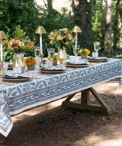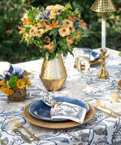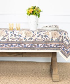 Bring artistic charm to your table with our Peacock & Poms Tablecloth in blue. Hand block printed by artisans in India, this painterly design features stylized peacocks and bursting pomegranate florals in a layered indigo palette. Crafted from soft cotton, it’s a bold yet timeless choice for everyday dining or special gatherings.