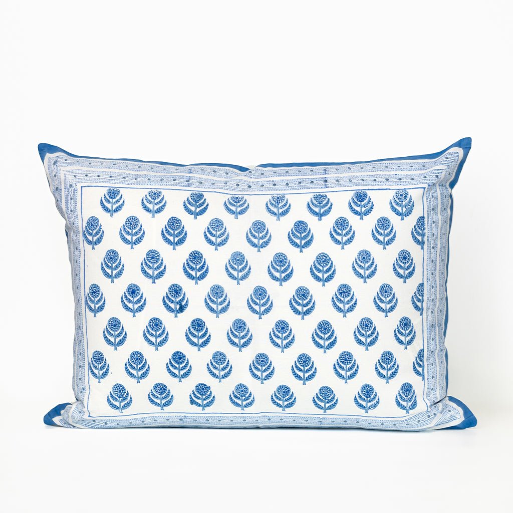 The Pinot Pillow Cover brings effortless elegance to any room with its refreshing blue floral motif, originally hand-painted and then hand-block printed by artisans. Crafted from soft cotton, each pillow cover showcases intricate detailing and a crisp border that enhances its refined, globally inspired style. Available in multiple sizes for easy layering—from sofas and reading chairs to outdoor seating and bedroom ensembles. Mix and match for a perfectly styled, artisan-crafted look.