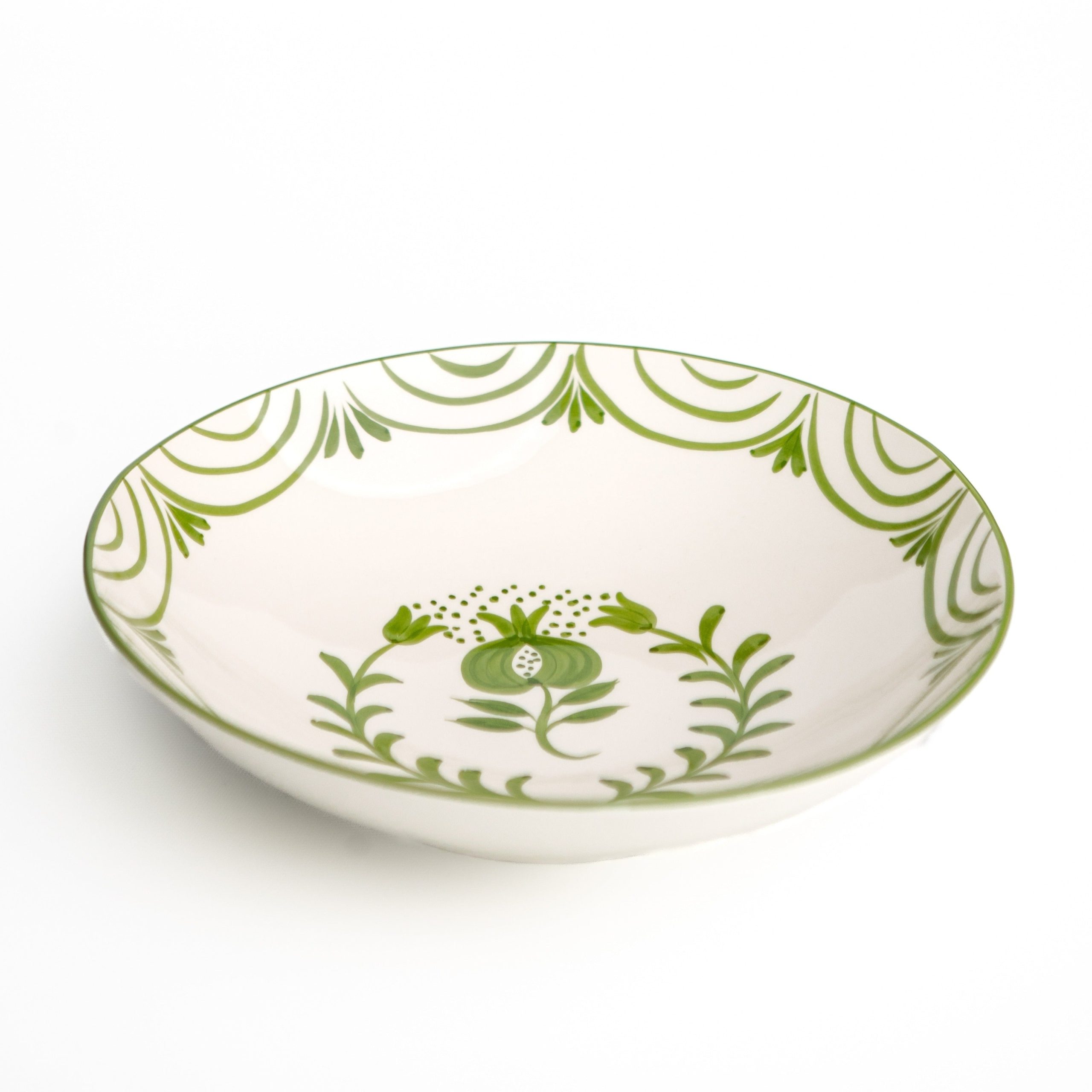 Classic with a twist, our Crest Green Ceramic Salad Bowl, showcases a bold, hand-painted Pomegranate crest motif in rich green tones. Crafted in Portugal, it’s the kind of piece you’ll reach for daily—beautiful enough for company and sturdy enough for everyday meals.
