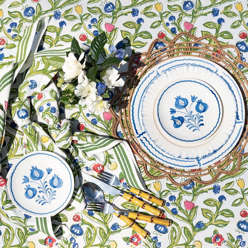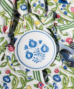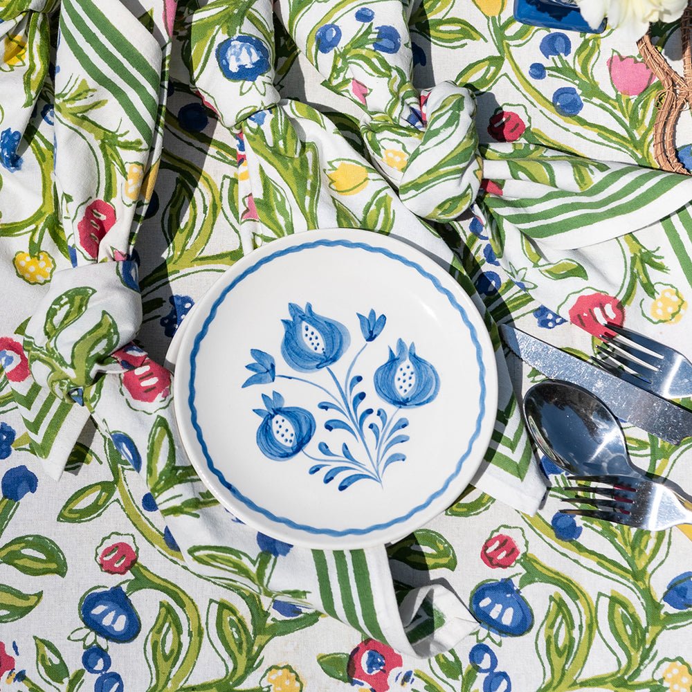 Serve your appetizers with a pop of color using the hand-painted ceramic Pomegranate Trio Sketch Cobalt Blue Appetizer Plates. Designed by Pomegranate founder and creative director Angela Beck, these hand-painted plates showcase three stylized pomegranates surrounded by delicate accents in a vibrant cobalt blue. Perfect for serving small bites or snacks, this set of 4 plates has a timeless look that is versatile yet elevated. Pair with the Pomegranate Trio Sketch Dinner Plates and Salad Plates for a complete set!