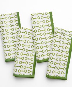 Bring equestrian style to your table with these beautiful equine-inspired napkins! The hand block printed green snaffle bit pattern adds an unmistakable touch of equestrian aesthetic, while the solid green border creates a finished, polished look. Inspired by the spirit of Gainesway Farm where our brand was founded, these napkins bring the world of horse racing and equestrian style straight to your table.