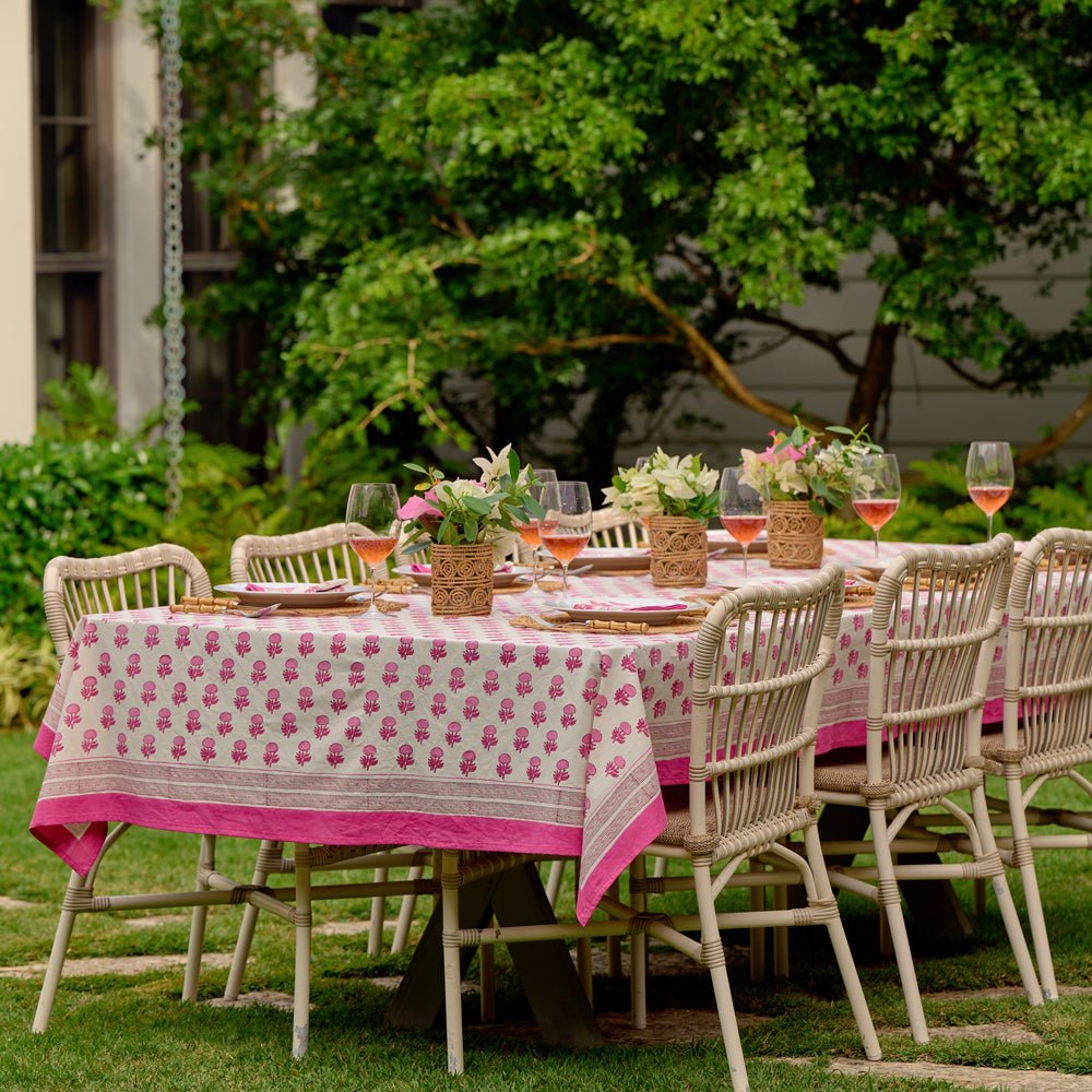 The Rosé Tablecloth is pure joy on the table. Soft pink motifs dance across the fabric, creating a setting that feels celebratory yet completely unfussy. It’s the kind of tablecloth that instantly sets the tone — relaxed, welcoming, and full of positive energy.