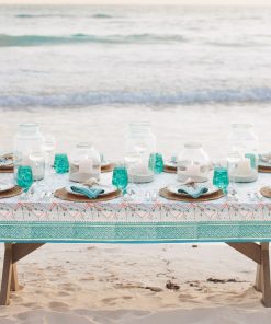 Set the table for a seaside escape with the Sea Fan Tablecloth. Hand block printed in shades of warm coral and serene teal, this design channels the beauty of the ocean—whether you’re entertaining at the beach or just bringing a little coastal inspiration to your home. Draped over your table, it creates an inviting setting for everything from summer brunches to laid-back seafood feasts with family and friends. It’s the statement piece your summer table has been waiting for.