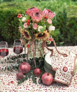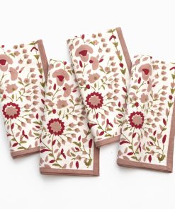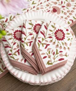 Elevate your table with our Starflower Fern & Blush Napkins. Hand block printed in delicate green and blush florals, these cotton napkins bring artisanal detail to every meal, blending everyday function with timeless style.
