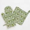Bring function and beauty to your kitchen with our Starflower Fern & Blush Oven Mitt and Pot Holder set. Hand block printed in soft green and blush florals, this set of 2 with an oven mitt plus a coordinating pot holder adds timeless style while keeping your hands protected.