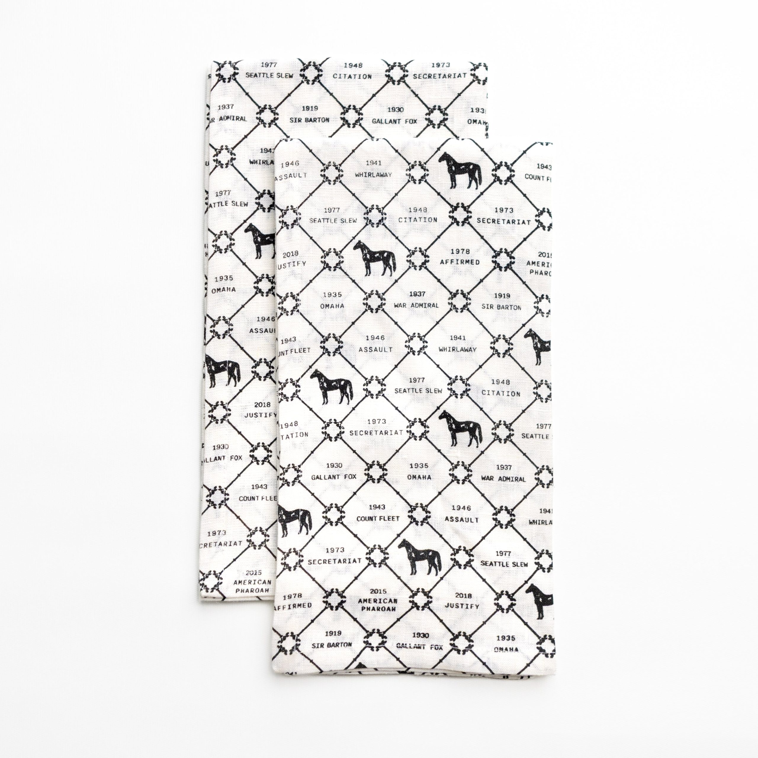 Celebrate the legends of the track with our Triple Crown Champions Tea Towels. Printed on 100% linen, each towel features a classic equestrian design that pays tribute to every Triple Crown winner from Sir Barton to Justify. Elegant and functional, they bring a touch of racing heritage to your kitchen or bar.