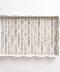 Let our White Wicker Scalloped Rectangle Tray bring a touch of elegance and functionality to your home. Handcrafted from premium wicker, this tray boasts a unique scalloped design that adds both practicality and beauty to any room. With three versatile sizes to choose from, this tray is perfect for stylishly serving, organizing, or displaying items.