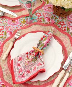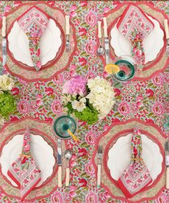 Colorful, cheerful, and perfect for the spring/summer season! Intriguing as a true wildflower garden, this collection features an array of pinks on a sky blue background with pops of lime green creating the perfect feminine pattern. These cotton napkins brighten up your table and simplify setting the table. Match with coordinating tablecloths, placemats, or table runner for a vibrant floral look.